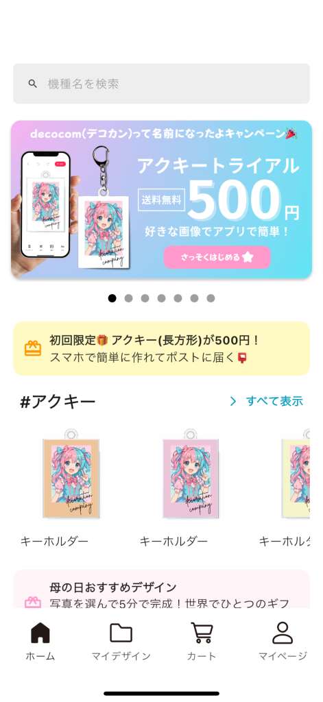 デザインケースは、 「デコカン(decocom)」に名前が変わりました。サービス内容やご利用方法に変更はありません。