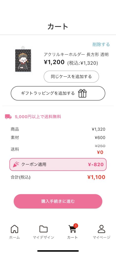 カート画面で、クーポン適応されていることをご確認ください。