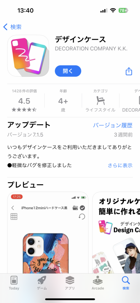 1. デザインケースアプリをダウンロードをお願いします。