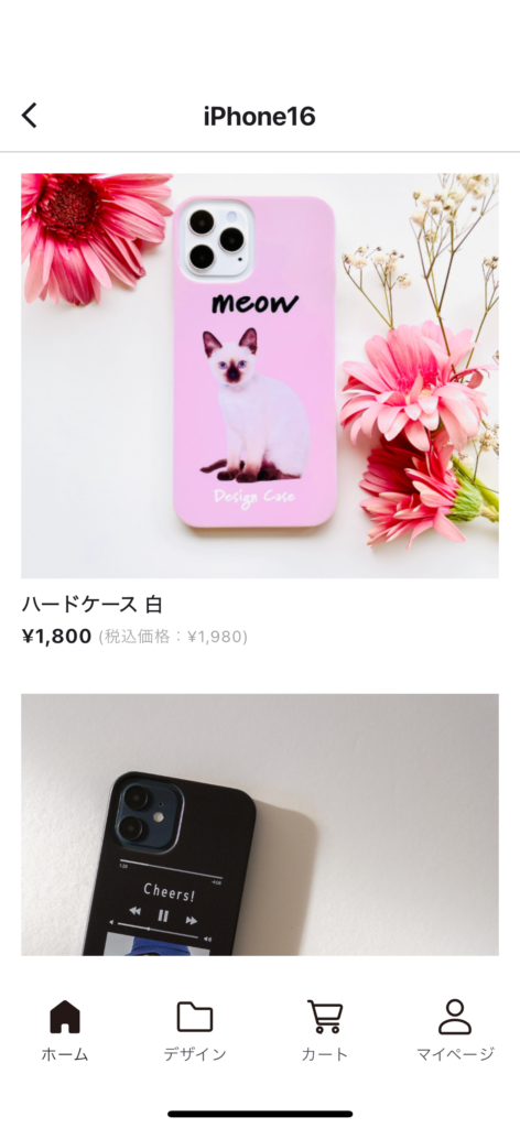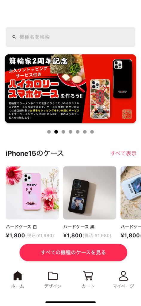 ハイカロリースマホケースデザイン一覧が表示されます。