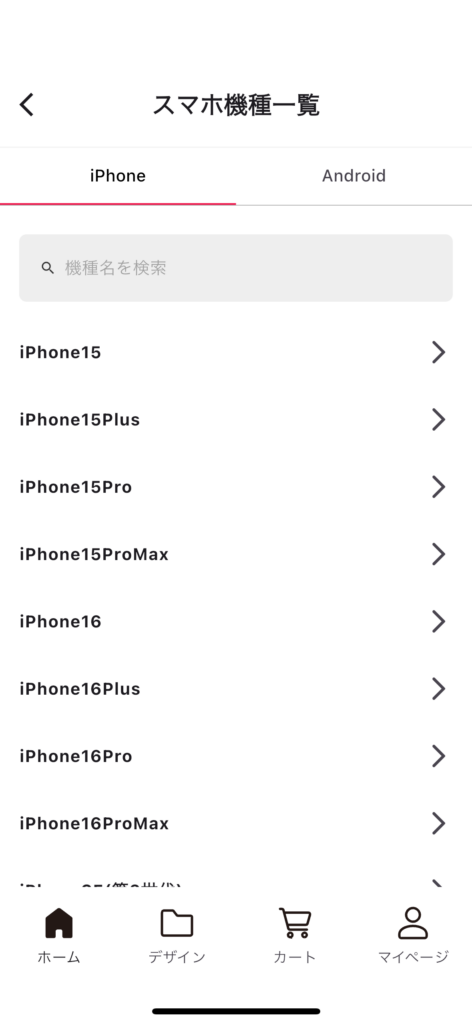 お使いのスマホ機種を選んでください。