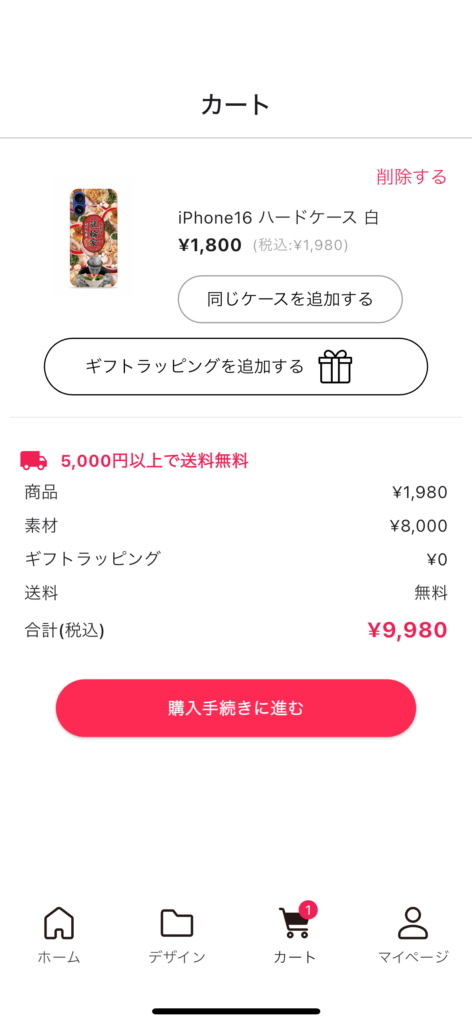 完成したデザインをカートに入れます。