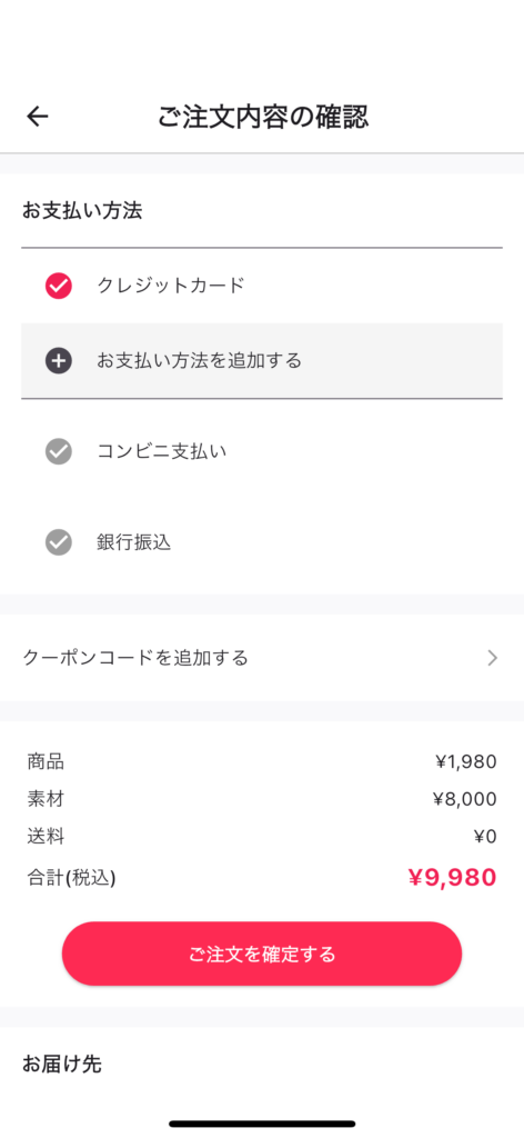 支払い手続きを完了すると、注文が確定します。