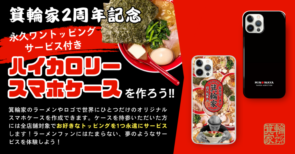 箕輪家2周年を記念して、特別なコラボスタンプを使用してスマホケースが作れるキャンペーンを開催中!自分好みのデザインを選んで、世界に一つだけのケースを作成できます。